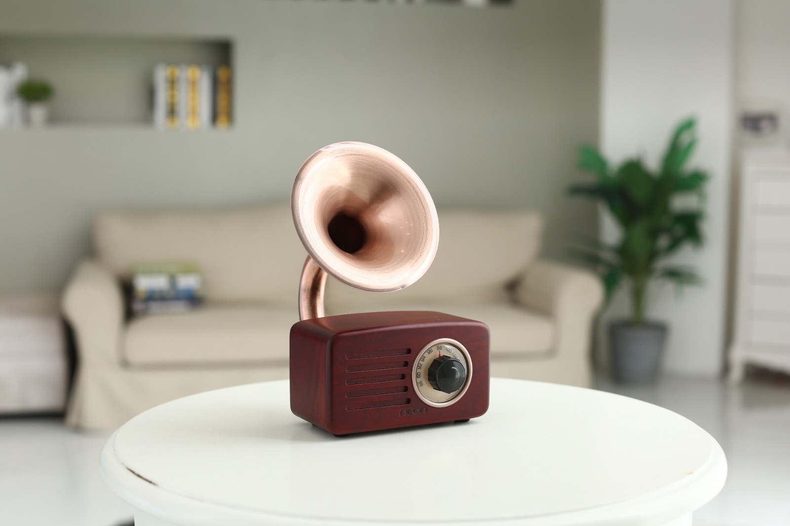 留聲機造型的號角藍(lán)牙收音機,造型別致,人聲飽滿,真號角喇叭設(shè)計,聲音真的從號角傳導(dǎo)出來!